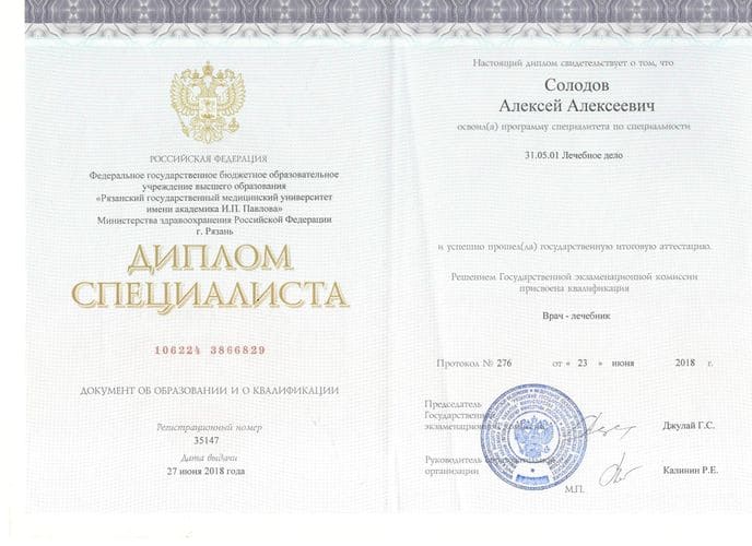 В 2018 году окончил ФГБОУ ВО «РязГМУ им. И.П.Павлова» по направлению «лечебное дело»: квалификация «врач-лечебник».