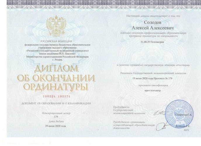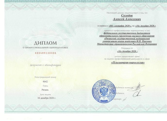 В 2020 году окончил ординатуру по специальности «Психиатрия», а также прошёл профессиональную переподготовку по специальности «Психиатрия-наркология».