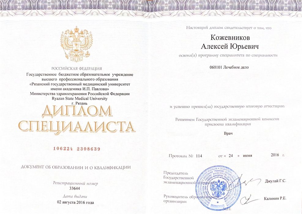 Окончил Государственный медицинский университет имени академика И.П. Павлова (2016 год).